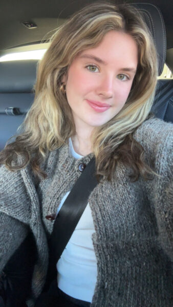 “Hi Aunt Trish! How are you? It was finally cold enough the other day to wear this awesome sweater. Got a lot of compliments on it ❤️❤️”