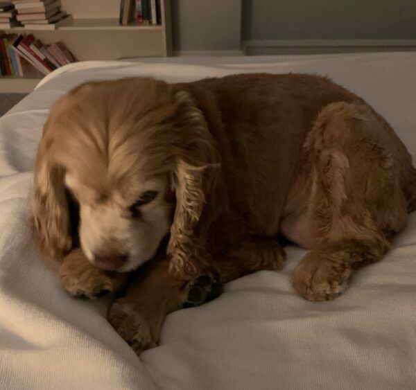 On a happier note, here is Ruby settling in for a nice night’s sleep: